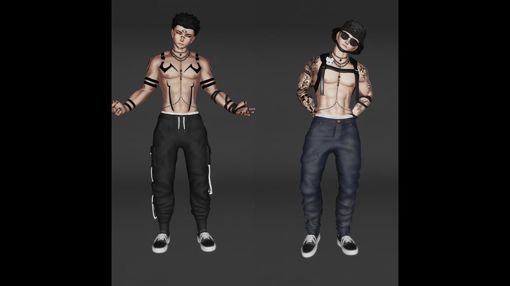 -Skin has texture toggles for different skin tones you prefer! Also Swaps between Tats and no Tats!